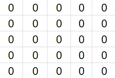 Consider an image of a square made of 5 rows and 5 columns. The pixel values are all equal to zero, making the square black.