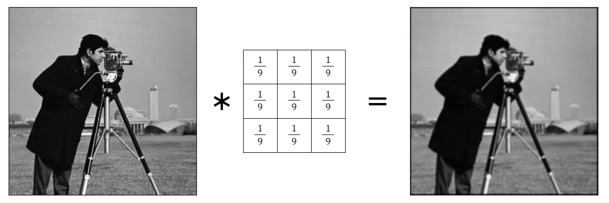 When you convolve an image with the kernel illustrated above, each output pixel will be the mean of 9 adjacent input pixels, resulting in a blurred image.