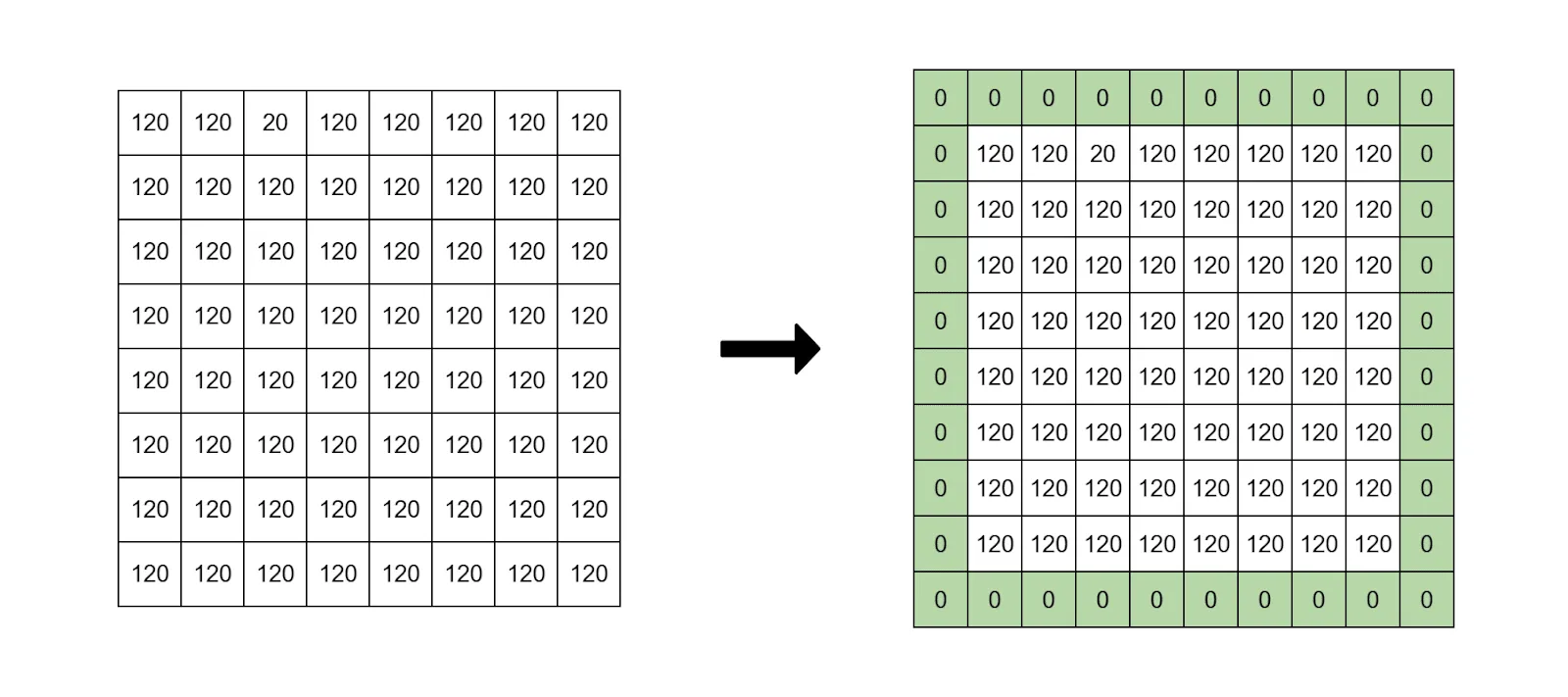 Padding suggests filling the edges of an image with temporal values. Applying it lets you provide the missing values to compute an output properly. There are multiple ways of performing padding, so let’s closely examine them.