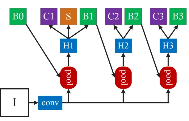 Here we can see that the segmentation branch "S" is placed parallel to the detection branch.