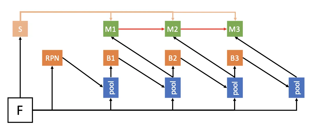 • HTC incorporates a direct path to reinforce the information flow between mask branches by feeding the mask features of the preceding stage to the current one;