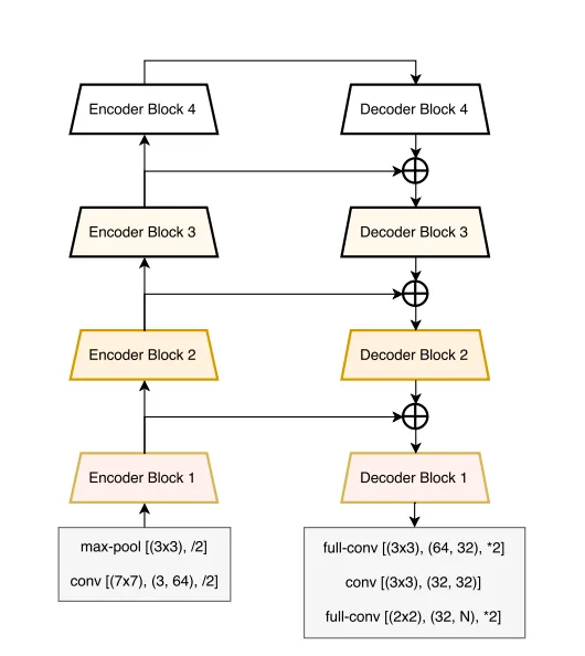 In LinkNet, the input of each encoder layer is also passed to the output of its corresponding decoder. By doing this lost spatial information is recovered that can be used by the decoder and its upsampling operations.