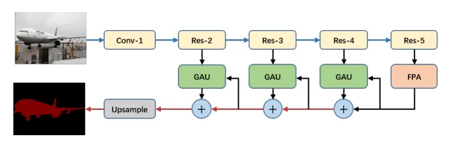 After producing a segmented feature map, we need the original resolution of the image. Architectures like DeepLabv3+ or PSPnet make use of naïve bilinear upsampling. PAN uses GAU, Global Attention Upsample as its decoder block.