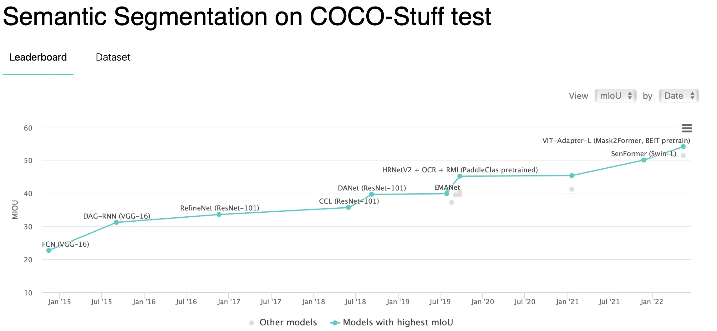 Speaking about Semantic Segmentation datasets and SOTA solutions, it is worth mentioning that many Image Segmentation datasets have Semantic Segmentation annotations within their labels. However, Semantic Segmentation might not be the primary focus of a dataset. This means that the annotations in such datasets might not be 100% accurate, leading to a need to run a quality control process before diving into solution design.