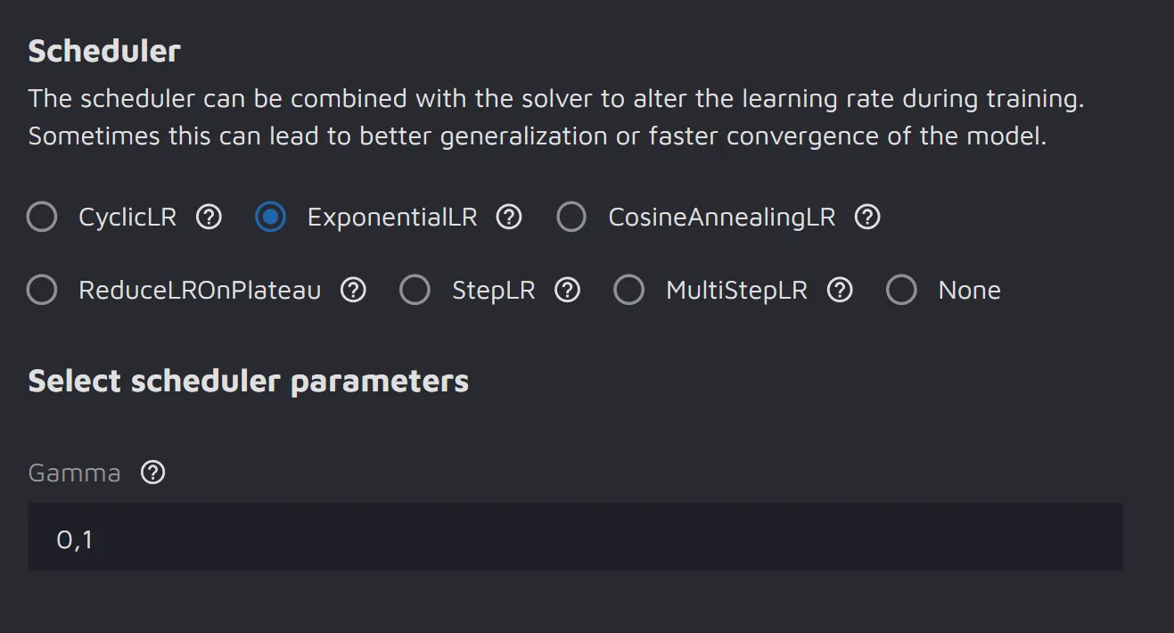 There are many types of schedulers. Below are the learning rate schedulers that Hasty offers: