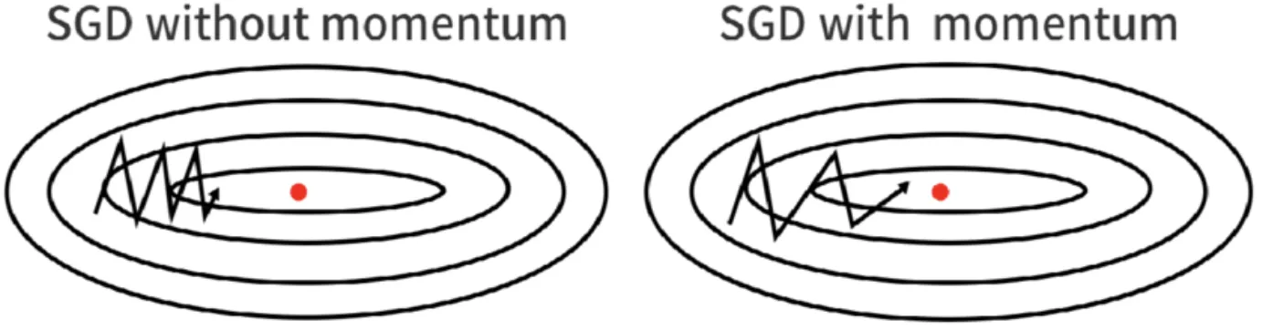 A nice side effect of momentum is that it smooths the way SGD takes when the gradients of each iteration point into different directions.
