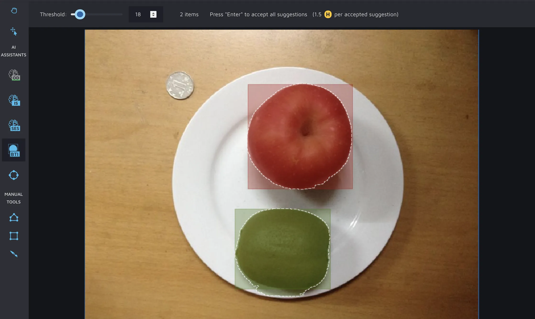 Box to instance is a tool that is directly available when creating a new project or after having imported an existing project. However, it does get smarter over time. For the first ten images, you will have a pre-trained model assisting you when using the tool. After 10 images, we switch to the custom-trained model IS model that you've trained.