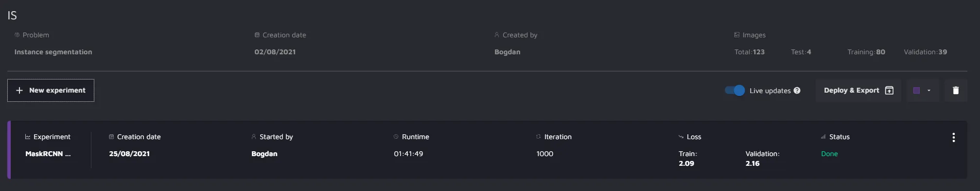 Instance Segmentation dashboard
