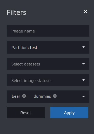 For example, here I have filtered the to see the test data with the labels bear and dummies.