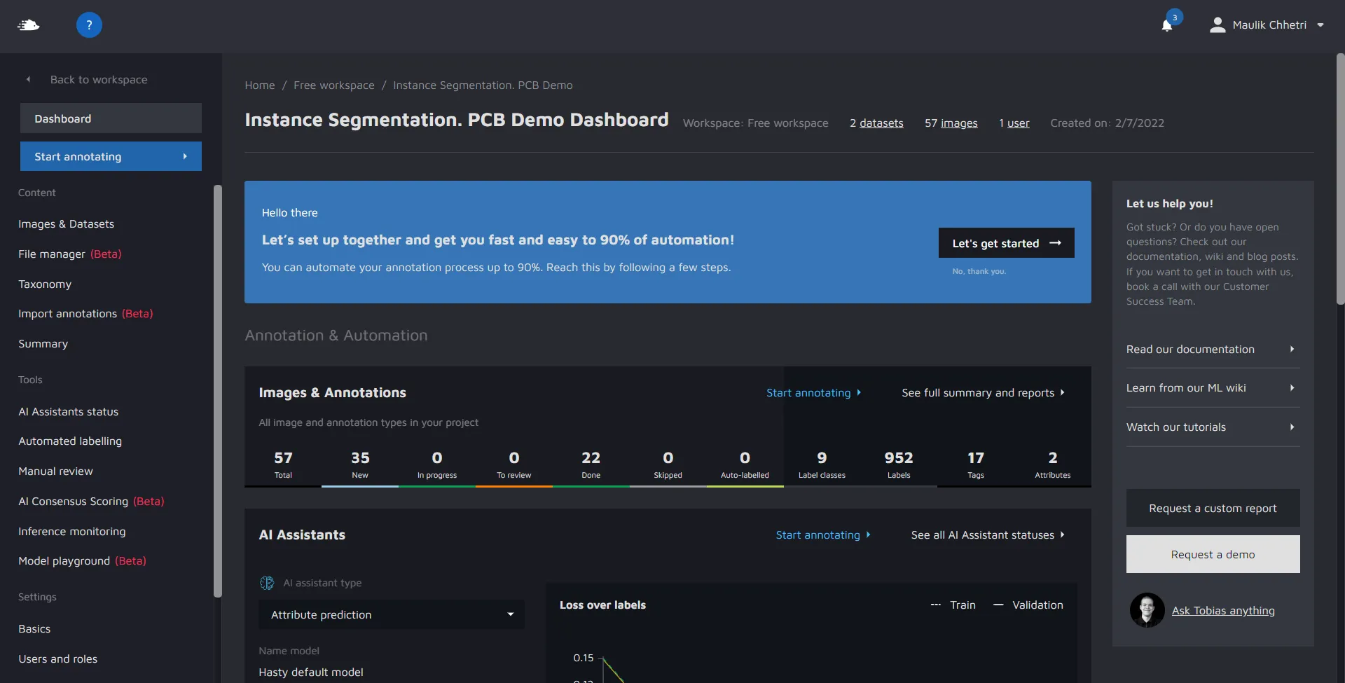 Now, you can answer these questions yourself. With our new AI assistants status page, you can see how models improve over time to get an idea of how you are progressing towards annotation automation.