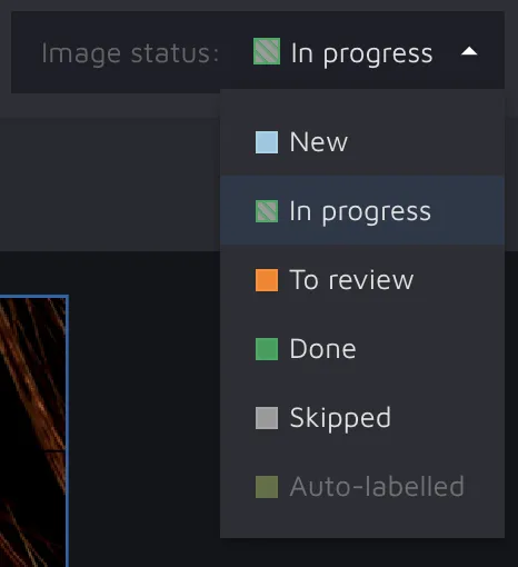 You can swiftly manage your data assets in Hasty through a status system. This system is quite essential as, for example, it shows the AI assistants which images should be used on training.