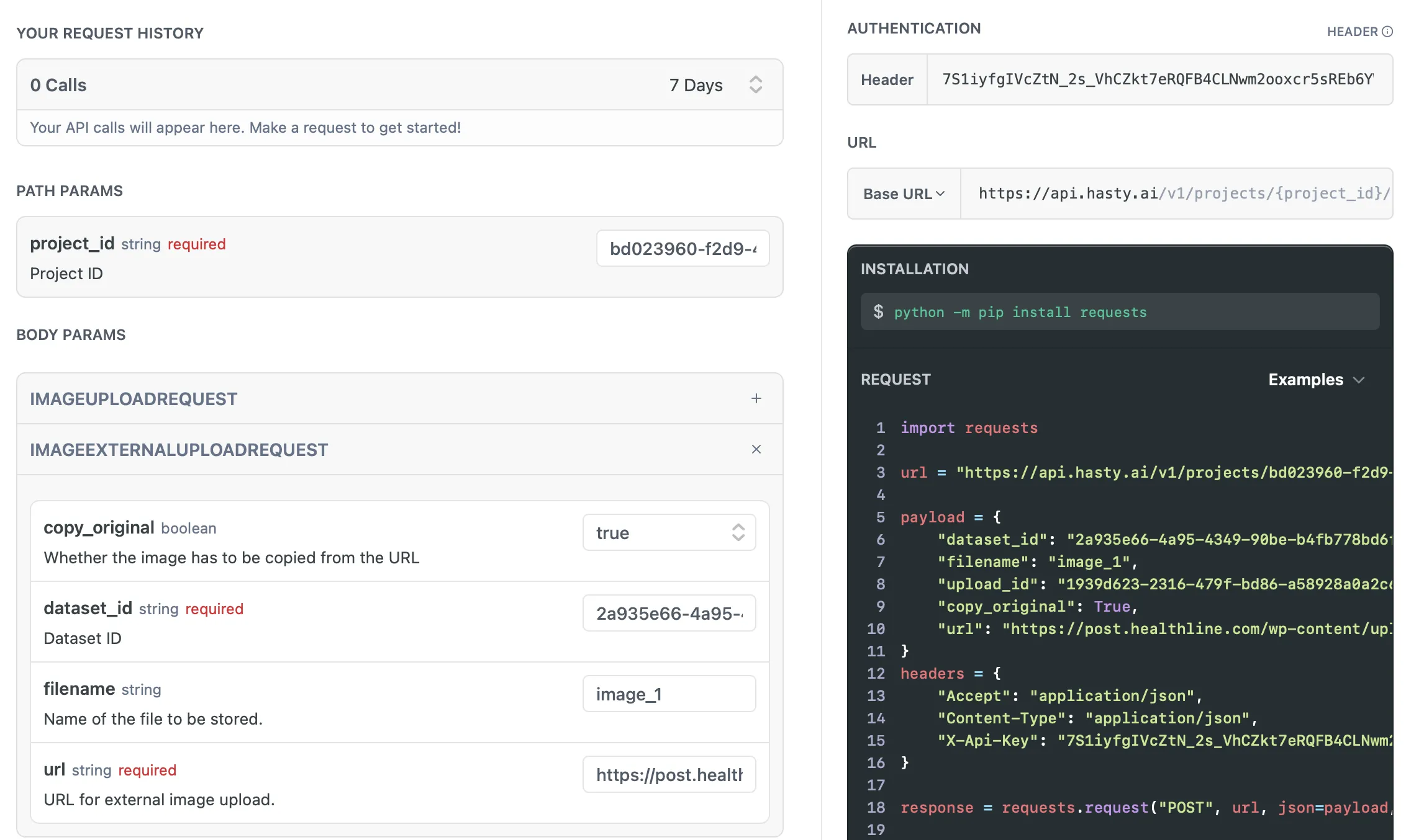 If you have an API key, you are ready to try out the API. The best first step you can take when learning to work with something new is to refer to its official documentation. The same is true with Hasty API. So, to start with, please check all the API capabilities in the documentation.