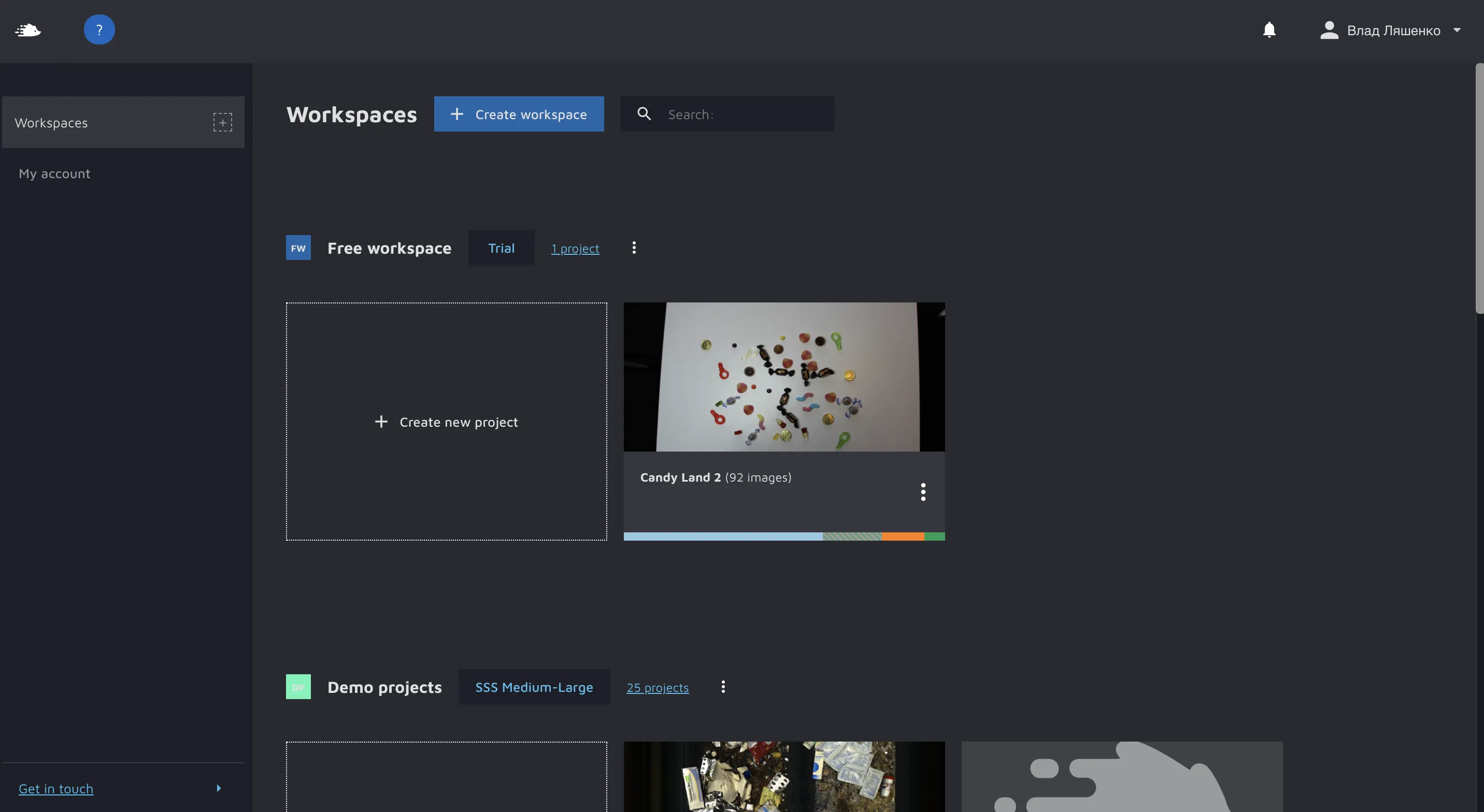 So, to work with Hasty’s API, you also need an API key. Let’s check out how to get one. First, you need to go to the list of your workspaces by clicking on Hasty’s hedgehog logo in the upper left corner. Second, choose a workspace you want to create your API key for.