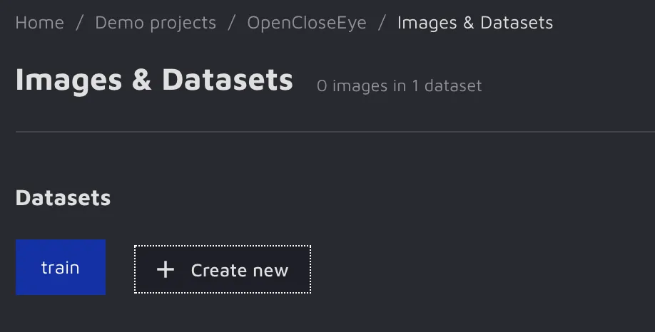 Your new project will likely have many datasets. By default, Hasty creates one named Default, but you can create a new dataset yourself. The workflow is the same as in the previous example: