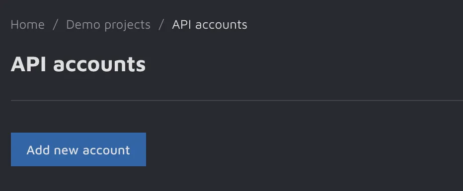 To create an API key, please go to the API accounts section and press the Add new account button.